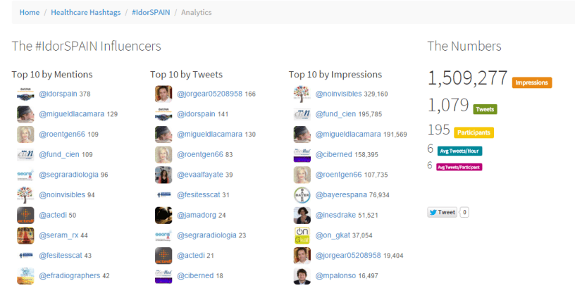 Cuando registré la etiqueta ( #IdorSPAIN is a healthcare tweet chat hashtag submitted by @MiguelDlaCamara ) hace meses, el objetivo es poder ‘medir’ la actividad, que puedes hacer clicando en este enlace.