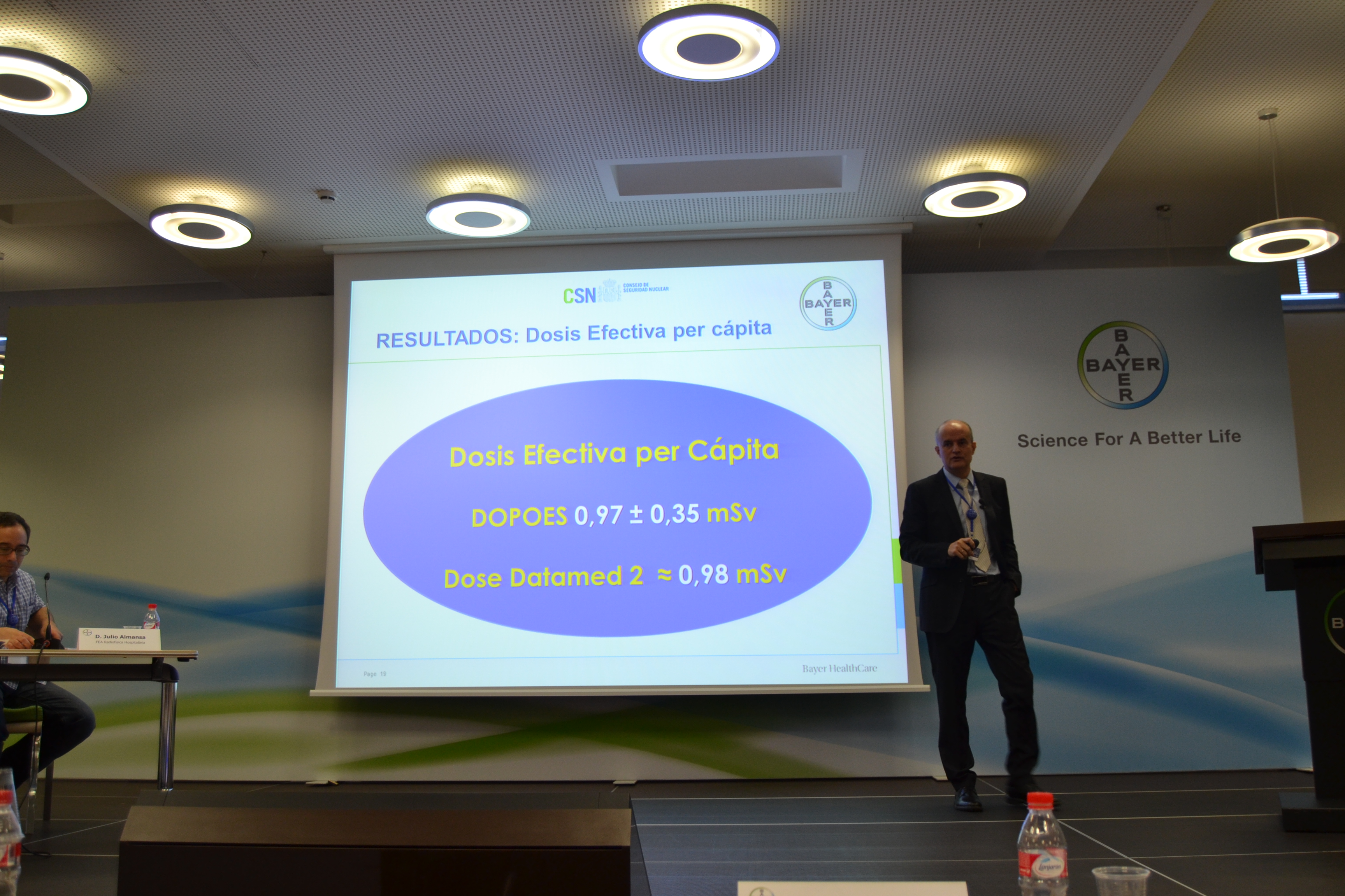 Rafael Ruiz Cruces, coordinador del proyecto DOPOES (DOsis POblaciones enESpaña), puesto en marcha por el Consejo de Seguridad Nuclear (CSN) y la Universidad de Málaga, expuso un análisis sobre procedimientos de radiodiagnóstico utilizados, frecuencia, y dosis recibidas por los pacientes. Tras 35 meses de trabajo, este Radiólogo innovador reveló que España se sitúa muy cercano a la media europea en dosis de radiación a pacientes en las pruebas de radiodiagnóstico, como figura en la imagen superior.