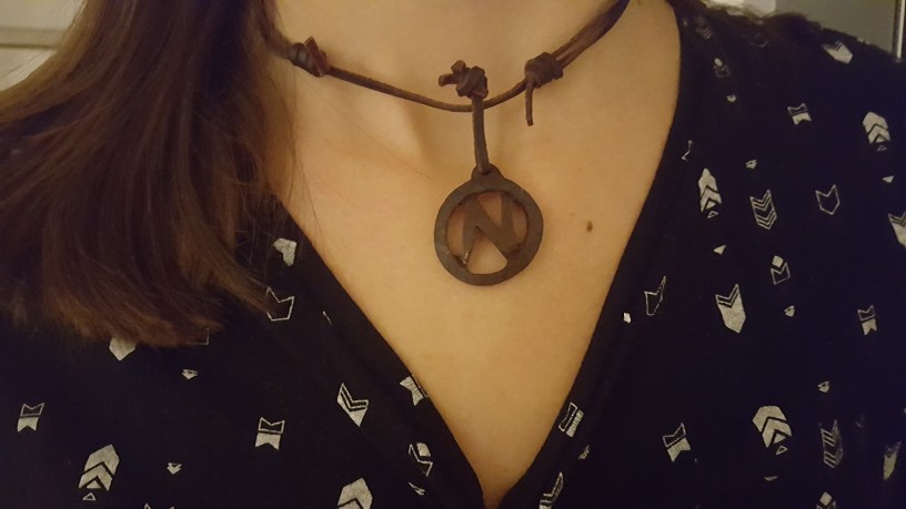 La joven que llevaba el colgante de la foto superior (que le tomé con el pertinente premiso de privacidad y anonimización, al igual que sus dos proyecciones de radiografía de tórax que acompañan a este artículo) por debajo de su camiseta, ya se había quitado el sostén para evitar el artefacto metálico de los broches y aros. Pero cuando le dije «por favor, quítese los elementos metálicos o de consistencia dura» (repito esa frase muchas veces), la joven no asoció a su colgante de madera que eso podría producir artefactado en la imagen.